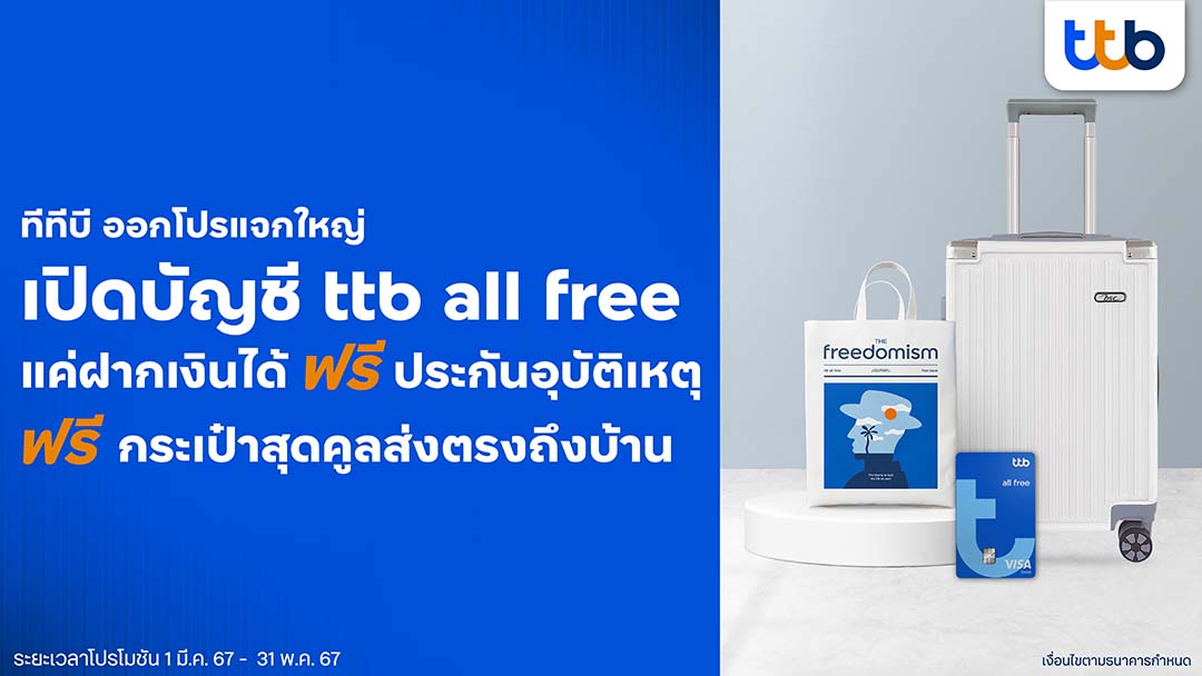 ttb all free แจกใหญ่จัดโปรลูกค้าใหม่ เปิดบัญชีรับกระเป๋าสุดคูล-ประกันชีวิตฟรี