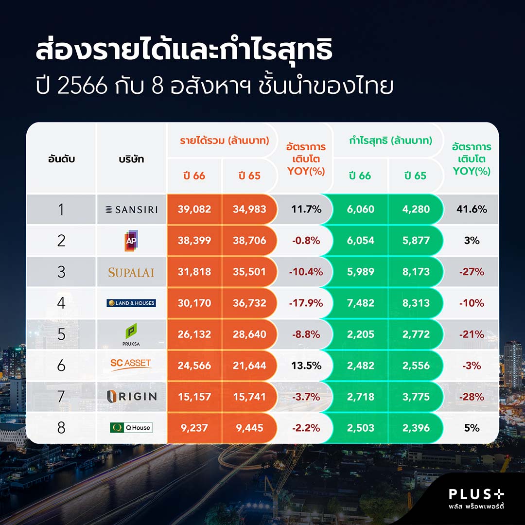 'พลัสฯ'สำรวจ8ผู้ประกอบการอสังหาฯ ชั้นนำของไทยทำผลงานเด่นปี66