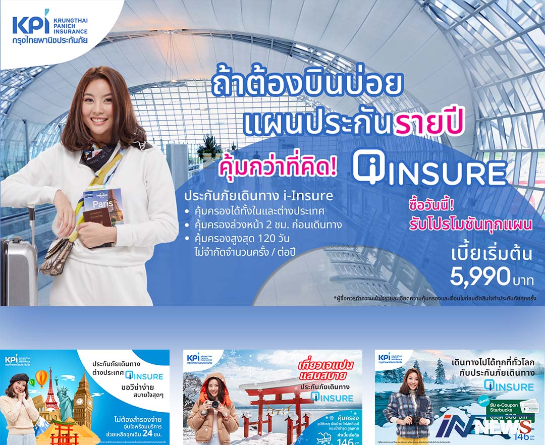'เคพีไอ'ปล่อยเบี้ยใหม่เอาใจสายเที่ยว ประกันภัยเดินทางไออินชัวร์ซื้อออนไลน์