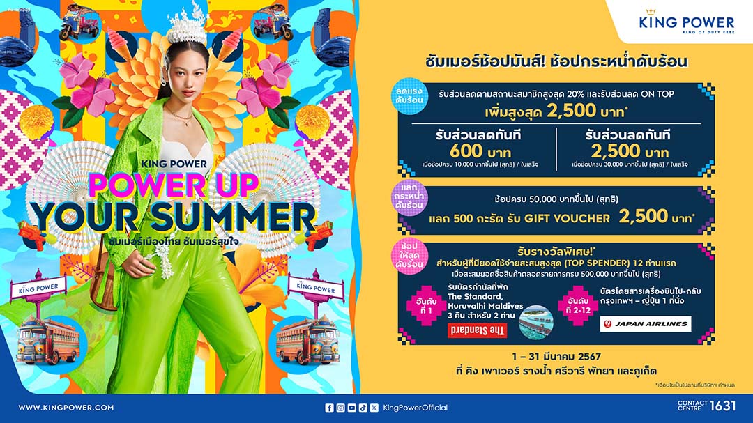 กรุงเทพฯ-คิง เพาเวอร์ ต้อนรับซัมเมอร์กับโปรดีที่พลาดไม่ได้ในแคมเปญ “KING POWER POWER UP YOUR SUMMER&nbs...