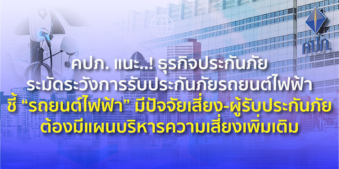 กรุงเทพฯ-คปภ. แนะ..! ธุรกิจประกันภัยระมัดระวังการรับประกันภัยรถยนต์ไฟฟ้าชี้ “รถยนต์ไฟฟ้า”มีปัจจัยเสี่ยง-ผู้ร...