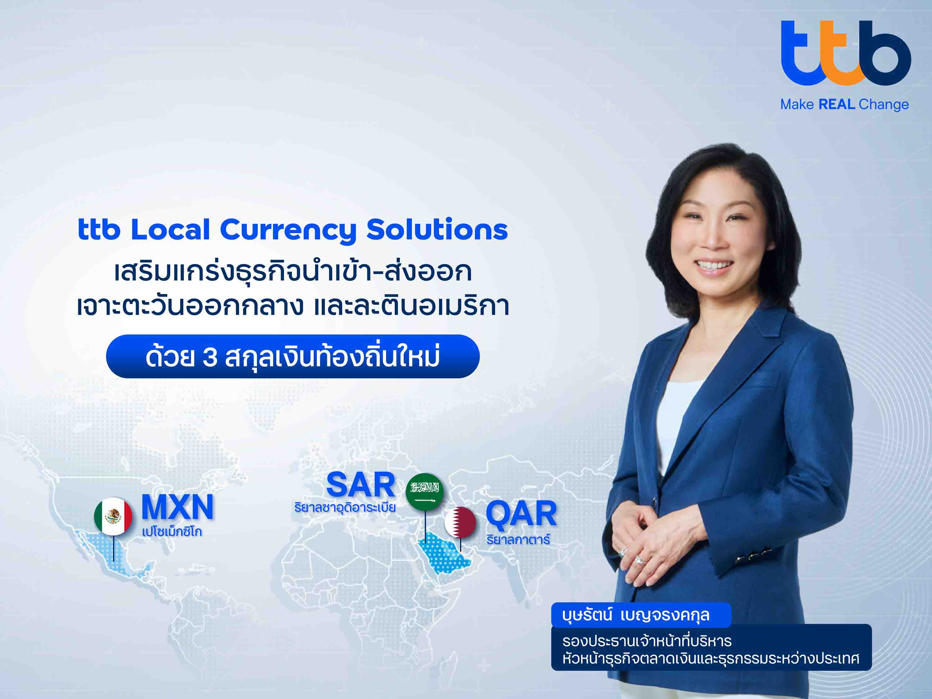 กรุงเทพฯ-ทีทีบีชวนผู้ประกอบการไทยบริหารความเสี่ยงค่าเงิน ผ่าน ttb Local Currency Solutions ลดการพึ่งพาสกุลหลัก...