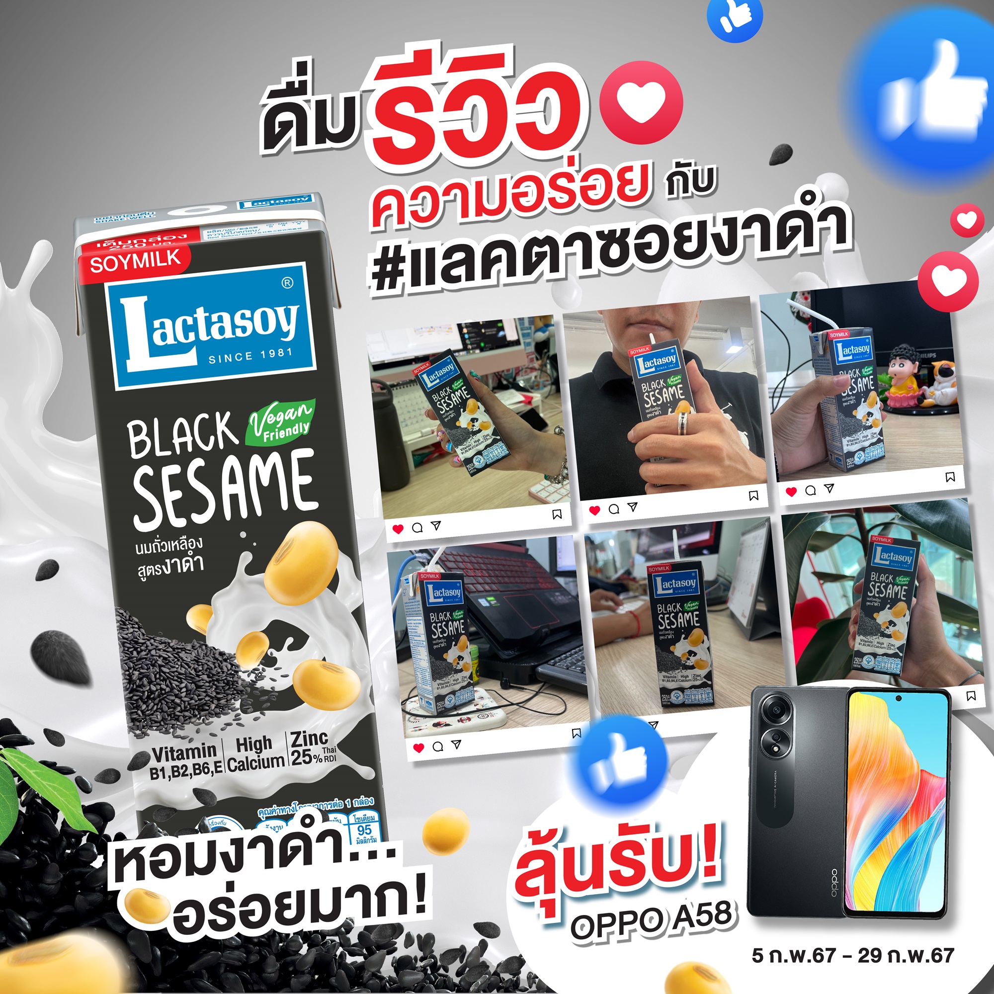 กรุงเทพฯ-แลคตาซอย ชวนรีวิวความอร่อยกับ “แลคตาซอยงาดำ” ลุ้นรับ OPPO A58 4 และดื่มฟรีเเลคต...