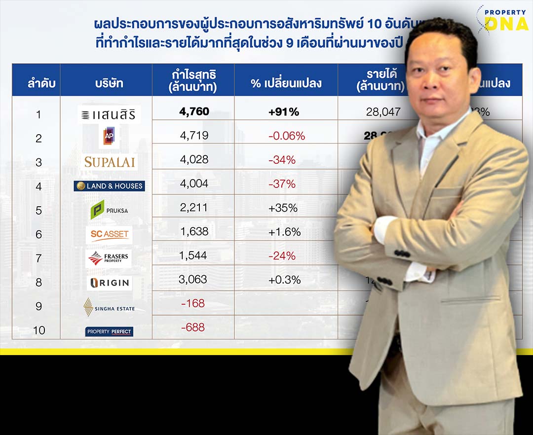 ชี้ผลประกอบการธุรกิจอสังหาฯ10รายแรก 9เดือน'แสนสิริ-เอสซีฯ-พฤกษา'สุดปัง!