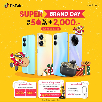 กรุงเทพฯ-เรียลมี แบรนด์สมาร์ตโฟนที่เติบโตเร็วที่สุดในโลก จัดโปรโมชั่นส่งท้ายปี Super Brand Day ผ่านช่องทาง Tiktok r...