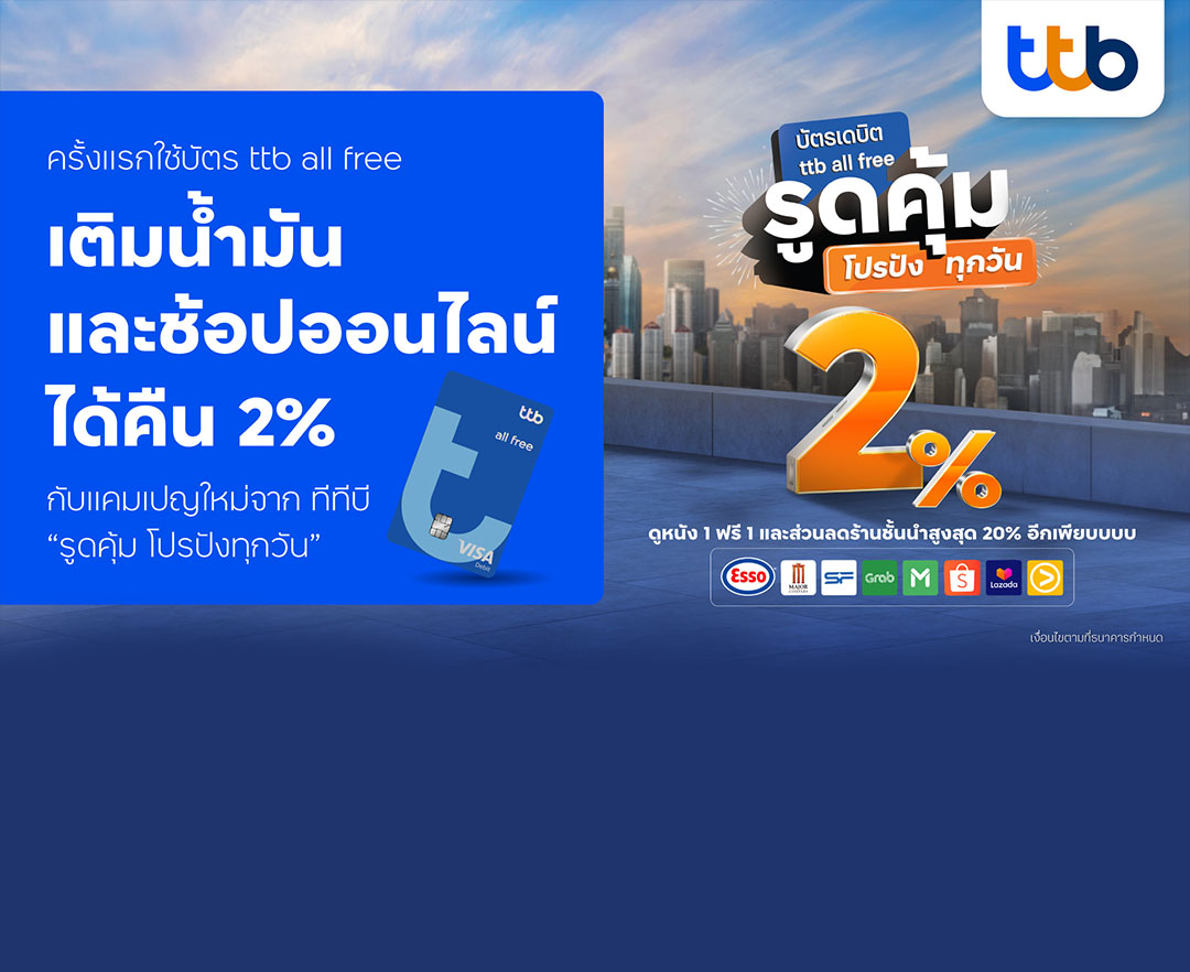 บัตรเดบิตttb all free เติมน้ำมันพร้อม ช้อปออนไลน์ได้คืน2%