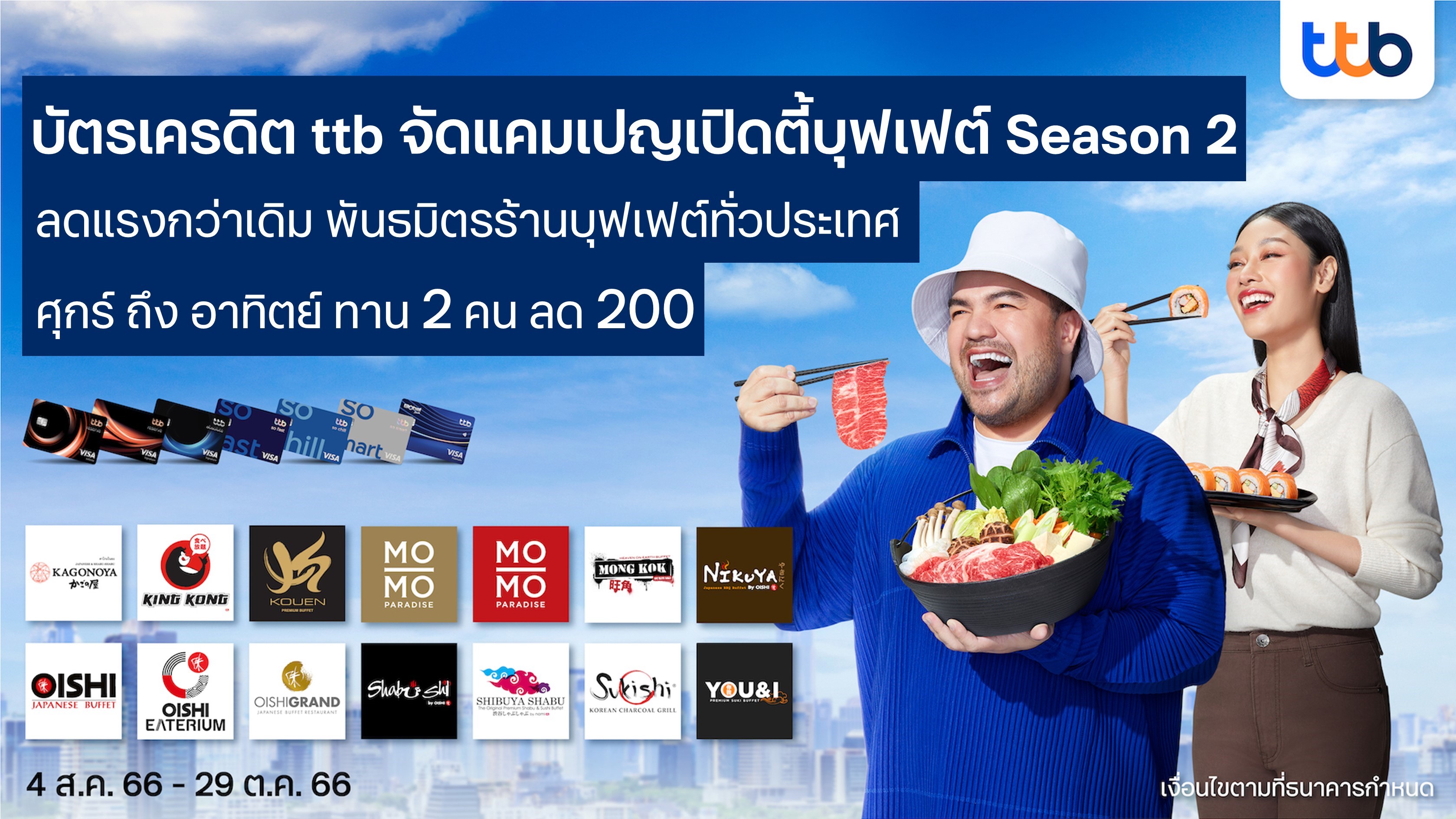 บัตรเครดิตttbจัดแคมเปญเปิดตี้บุฟเฟต์ Season2ลดแรงกว่าในร้านบุฟเฟต์ทั่วไทย
