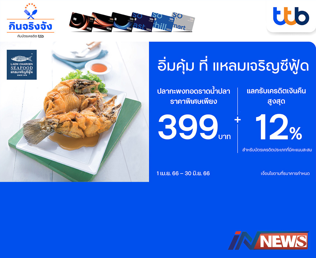 บัตรเครดิต ttb จัดมอบสิทธิพิเศษอิ่มคุ้ม ที่แหลมเจริญซีฟู้ดกับเมนูราคาพิเศษ