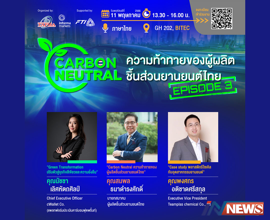 กรุงเทพฯ-อินฟอร์มา มาร์เก็ตส์ และ สมาคมผู้ผลิตชิ้นส่วนยานยนต์ไทยเชิญชวนเข้าร่วมฟังงานสัมมนาฟรี ในหัวข้อ“CARBON NEU...