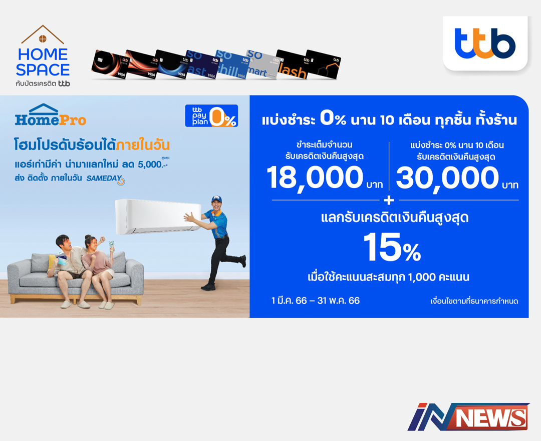 กรุงเทพฯ-บัตรเครดิต ttb ร่วมกับ HomePro ทุกสาขา จัดแคมเปญ “ช้อปดี ดีลคุ้ม เรื่องบ้าน” เม...