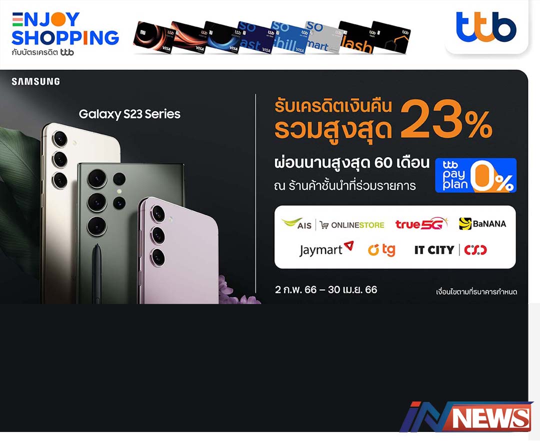 ทีเอ็มบีธนชาตมอบเครดิตเงินคืน 23% เมื่อซื้อSamsung Galaxy S23 Series