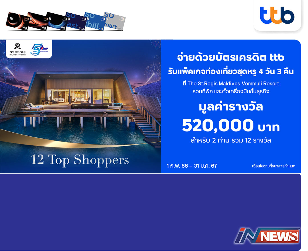 บัตรเครดิตttbเอาใจนักช้อปรักท่องเที่ยว มอบสิทธิพิเศษสุดหรูที่มัลดีฟ4วัน3คืน