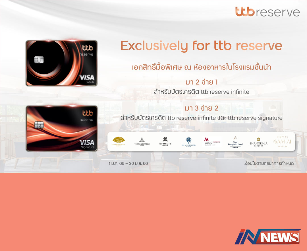 กรุงเทพฯ-บัตรเครดิตทีทีบี รีเซิร์ฟ อินฟินิท และบัตรเครดิต ทีทีบี รีเซิร์ฟ ซิกเนเจอร์ ร่วมกับห้องอาหารในโรงแรมหรู มอ...