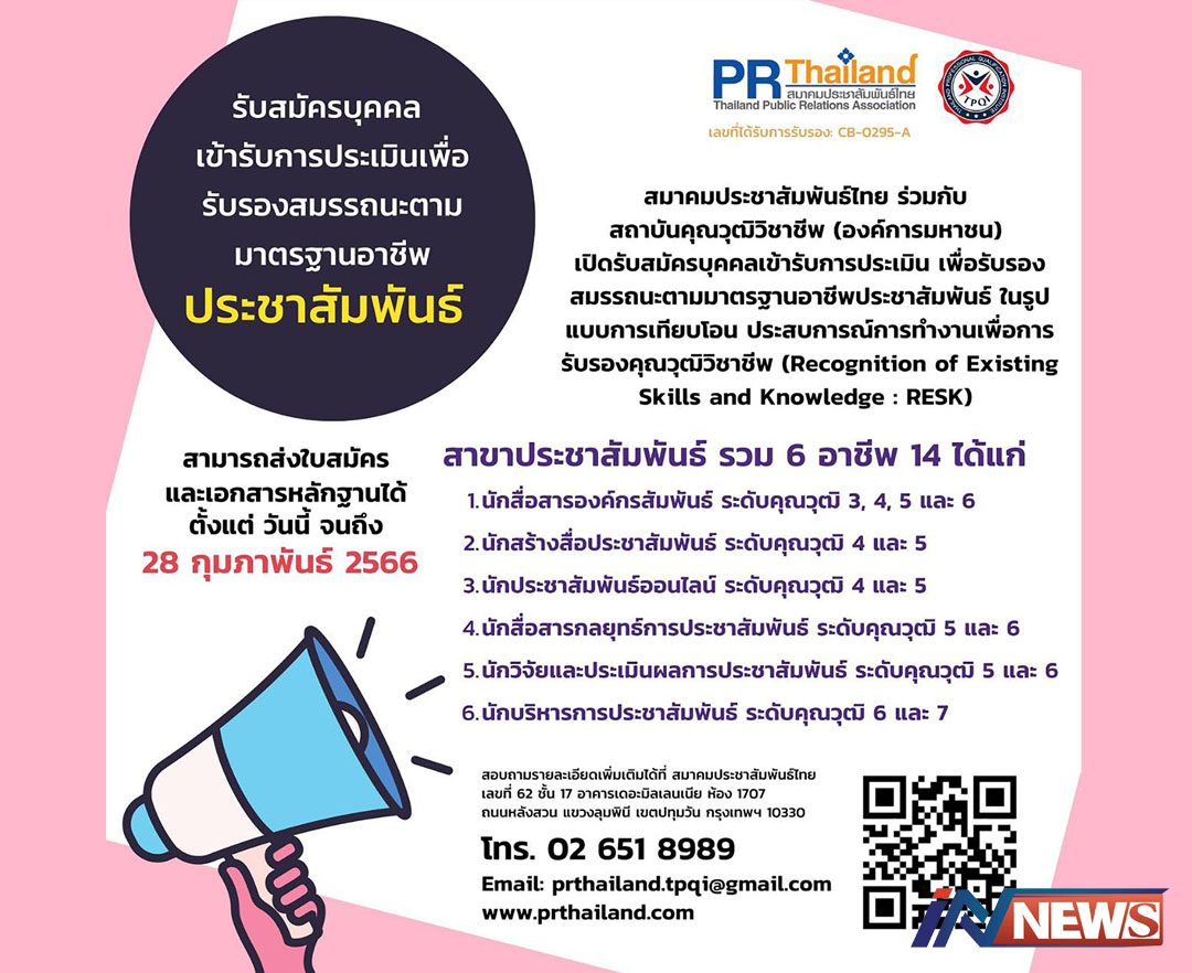 สมาคมพีอาร์ไทยร่วมกับส.คุณวุฒิวิชาชีพ รับสมัครเข้าประเมินคุณวุฒิอาชีพพีอาร์