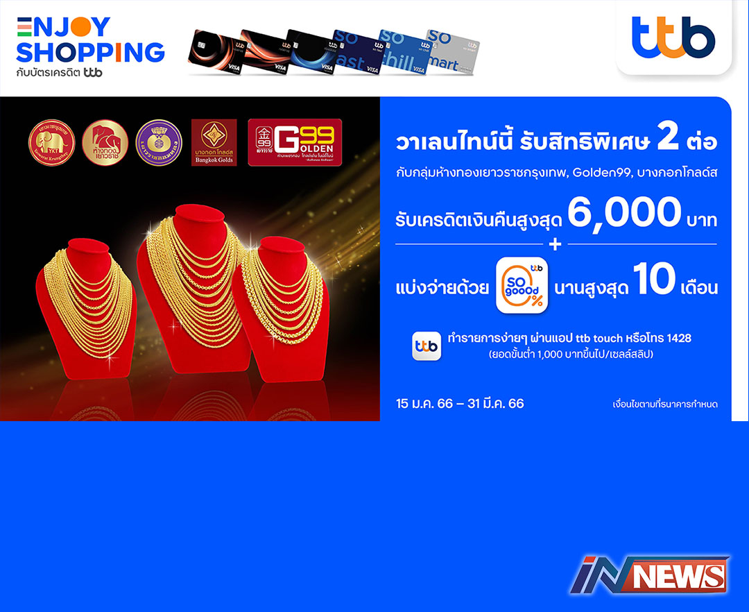 บัตรเครดิตทีทีบีร่วม3ห้างทองแบรนด์ดัง มอบสิทธิพิเศษ2ต่อรับวาเลนไทน์