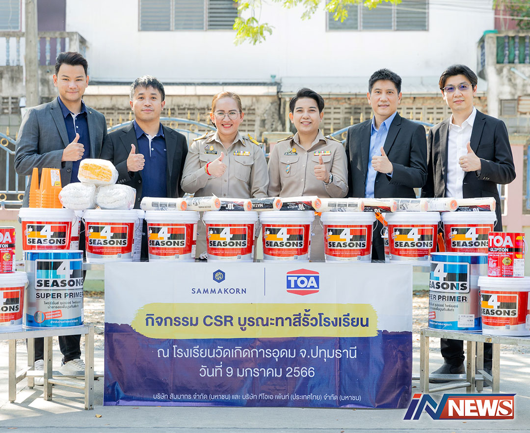 TOA จับมือสัมมากรจัดกิจกรรมอาสา ช่วยน้องทาสีรร.วัดเกิดการอุดมปทุมธานี