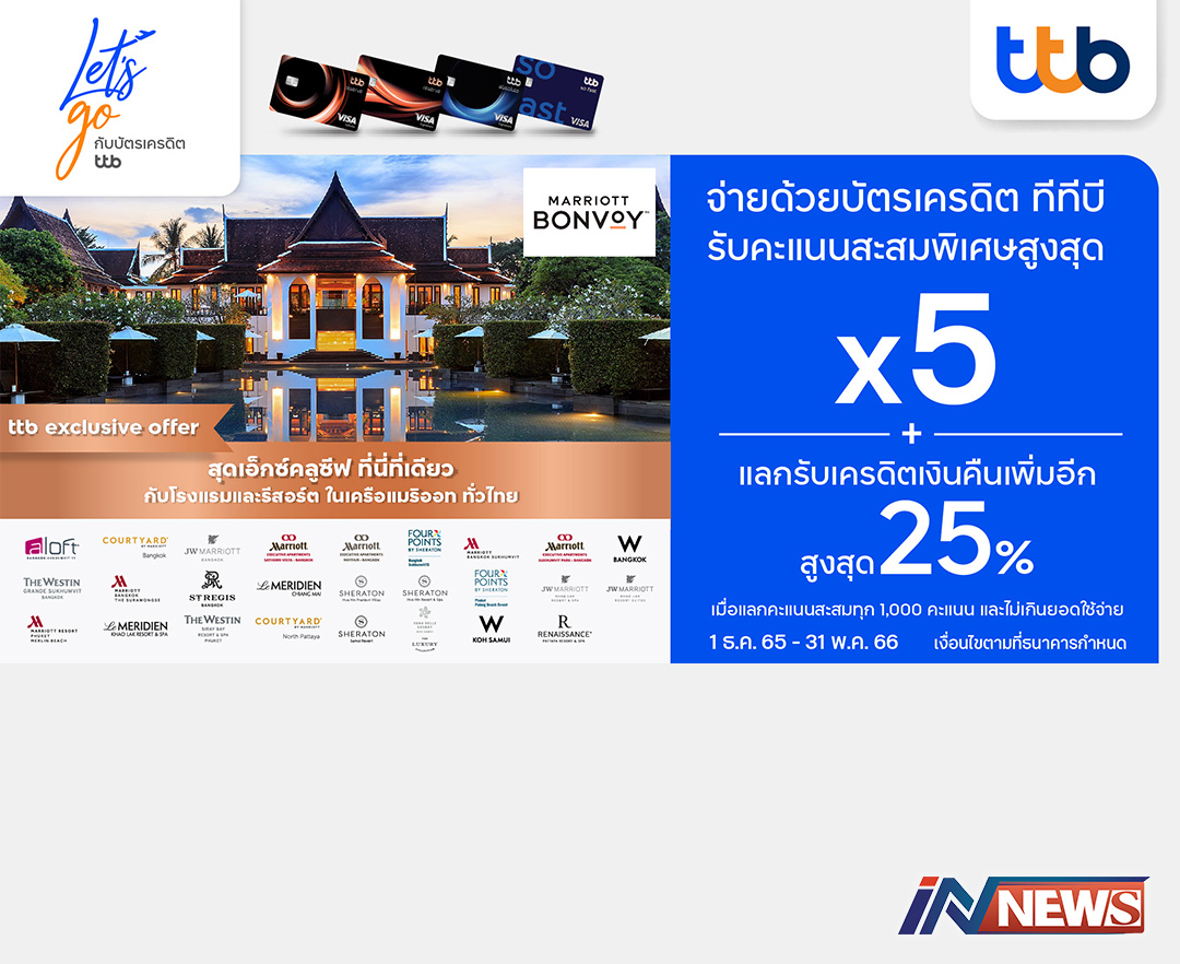 บัตรทีทีบีจับมือกับเครือแมริออททั่วไทย มอบคะแนนสะสมพิเศษสูงสุด5เท่า