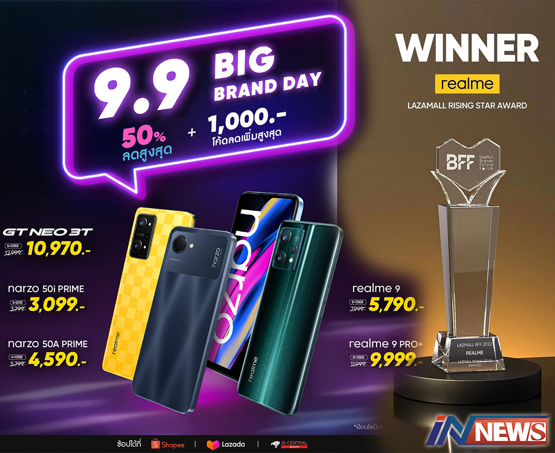 realme 9.9 BIG BRAND DAYตื่นตา สมาร์ตโฟนสุดล้ำยกขบวนมาลด50%