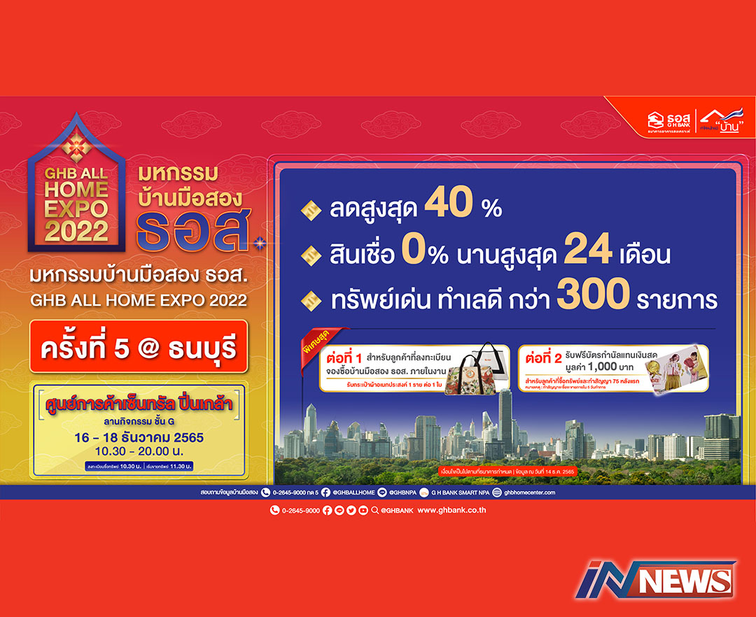 กรุงเทพฯ-ธนาคารอาคารสงเคราะห์ (ธอส.) เอาใจคนอยากมีบ้าน จัดงานมหกรรมบ้านมือสอง ธอส. : GHB ALL HOME EXPO 2022 @ธนบุรี ระหว...