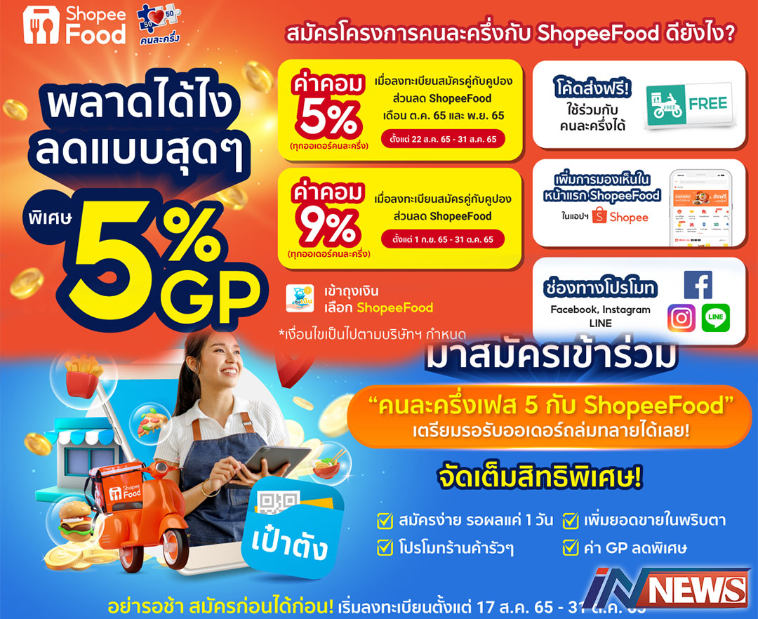เริ่ม‘คนละครึ่งเฟส5’กับShopee Food พาร์ทเนอร์รับสิทธิ์ส่วนลดค่าGPพิเศษ