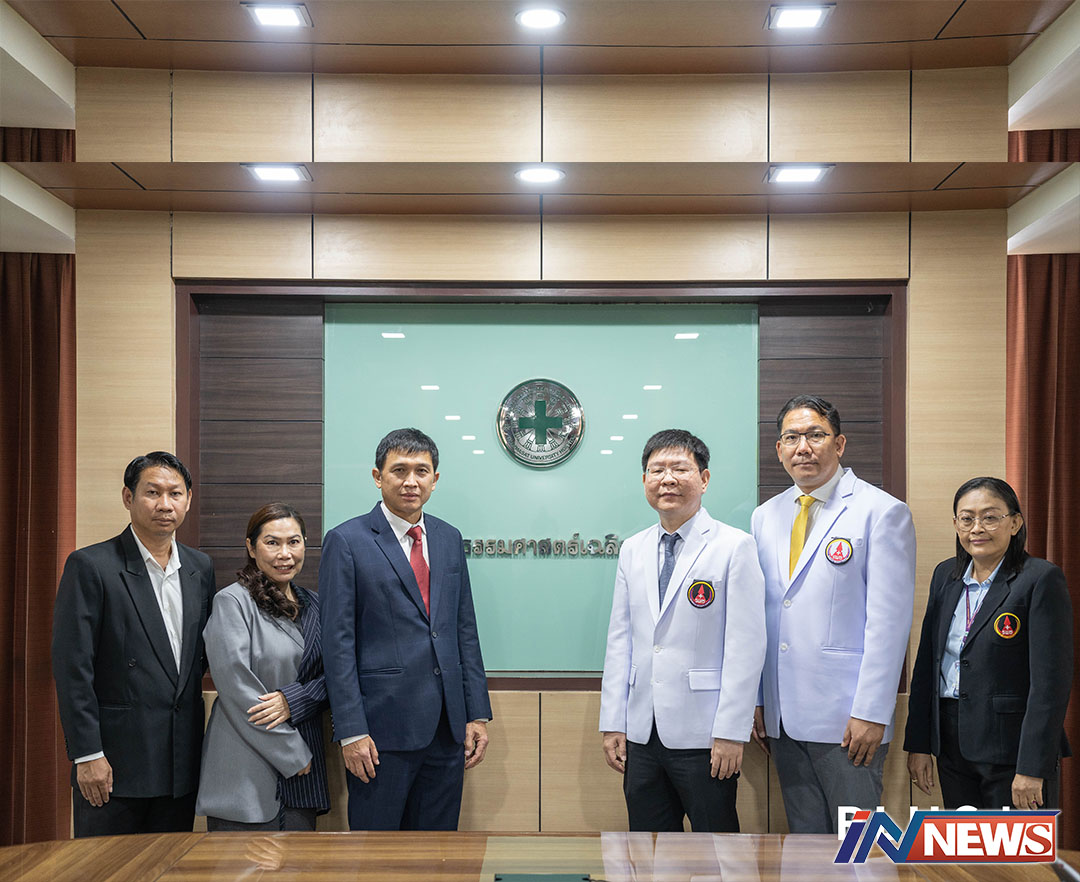 กรุงเทพฯ-รศ.นพ.พฤหัส ต่ออุดม ผู้อำนวยการ (ที่ 4 จากซ้าย) และคณะผู้บริหารโรงพยาบาลธรรมศาสตร์เฉลิมพระเกียรติ และนายชาญ ศิร...