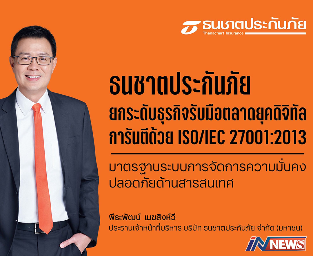กรุงเทพฯ-ธนชาตประกันภัย ผ่านการรับรองมาตรฐานระบบการจัดการความมั่นคงปลอดภัยสารสนเทศ ISO 27001 หรือ IS...