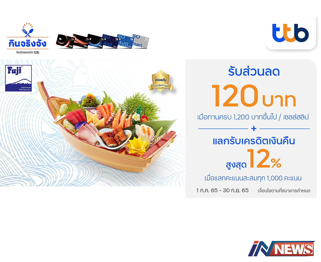 บัตรเครดิตทีทีบีจับมือภัตตาคารญี่ปุ่นฟูจิ มอบสิทธิพิเศษส่วนลดเงินคืน12%