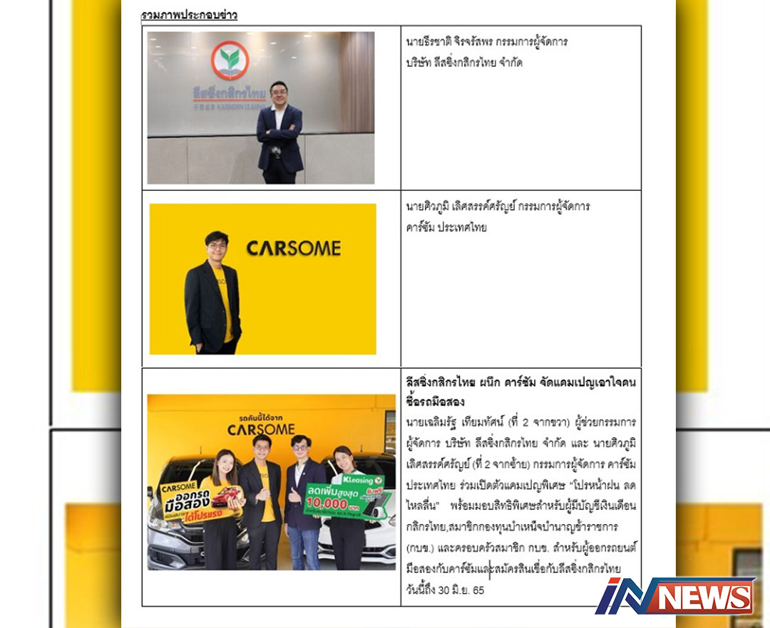 'ลีสซิ่งกสิกรไทย'ผนึกพันธมิตร'คาร์ซัม' ชูแคมเปญสินเชื่อรถมือสองวงเงิน100%