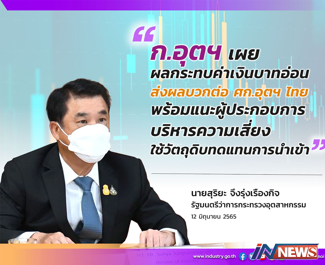 ก.อุตฯเผยค่าบาทอ่อนส่งผลบวกต่อไทย ทั้งศก.-อุตฯแนะธุรกิจไทยใช้วัถุดิบในปท.