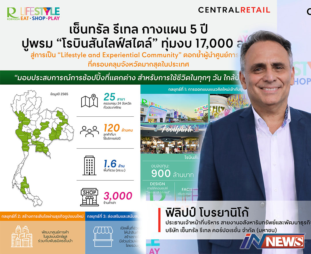 เซ็นทรัลรีเทลกางแผน5ปีทุ่ม1.7หมื่นล้าน ปั้น'โรบินสันไลฟ์สไตล์'ผู้นำคลุมตจว.