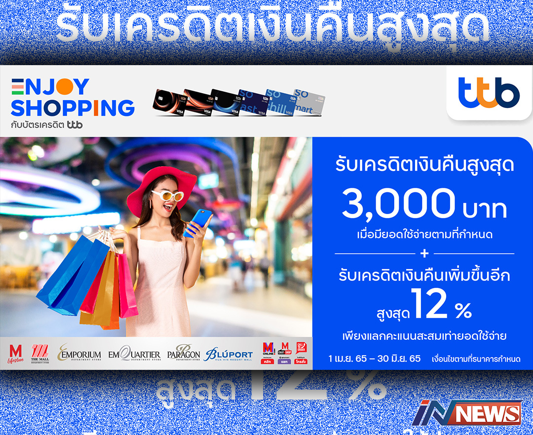 บัตรทีทีบีมอบเครดิตเงินคืนถึง3พันบาท เมื่อช้อปห้างเครือเดอะมอลล์รับเงินคืน12%