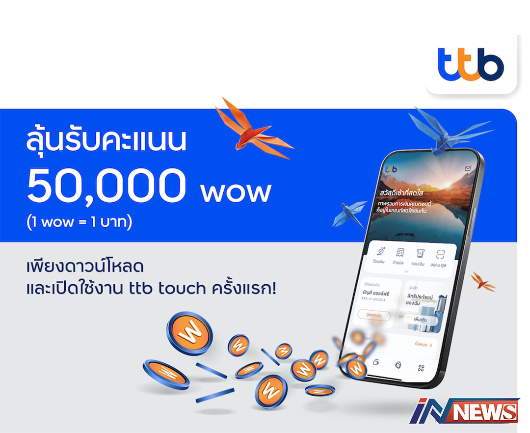'ทีเอ็มบีธนชาต'จัดแคมเปญลุ้นรับรางวัล สูงสุด5หมื่นwow/ด.โหลดttb touch