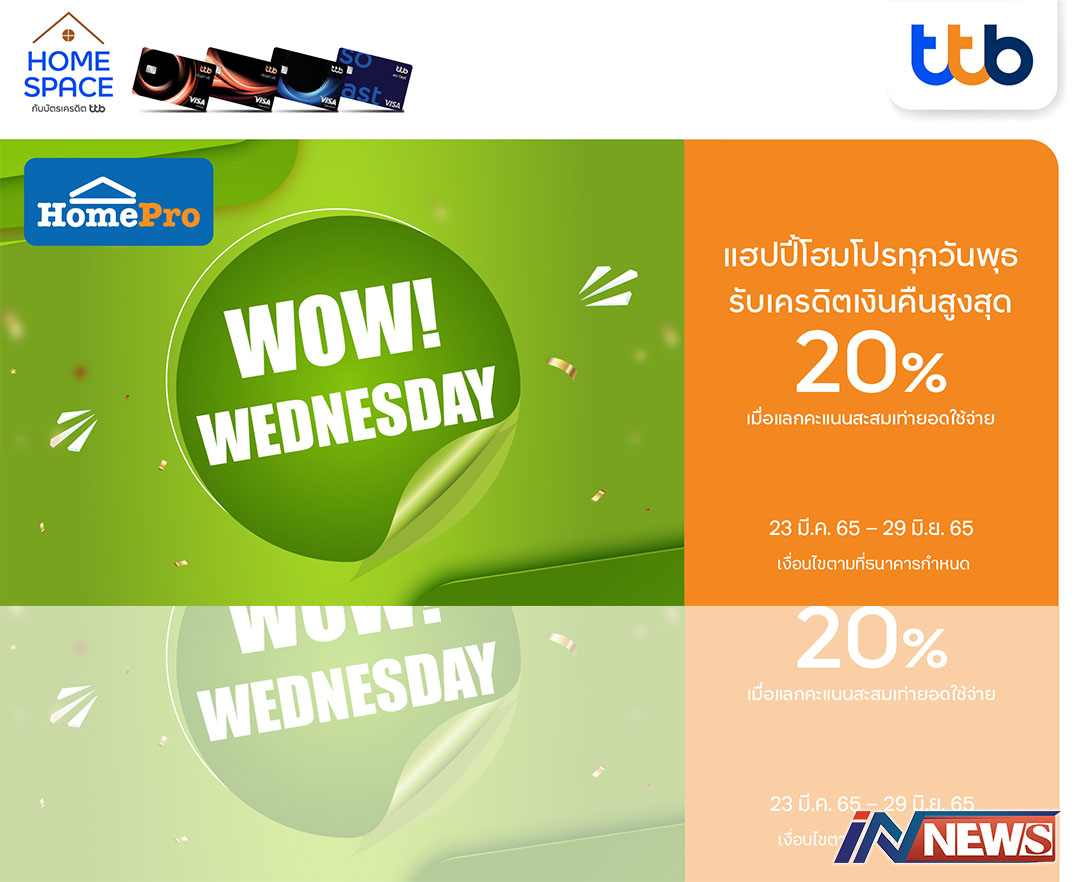 บัตรเครดิตทีทีบีชวนช้อปในแคมเปญ WOW Wednesdayซื้อที่โฮมโปรคืน20%