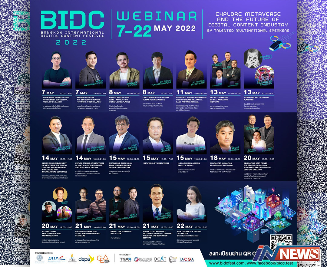 DITPเปิดเวทีรวมกูรูดิจิทัลคอนเทนต์ ในงาน BIDC 2022 Webinar 7-22พ.ค.นี้