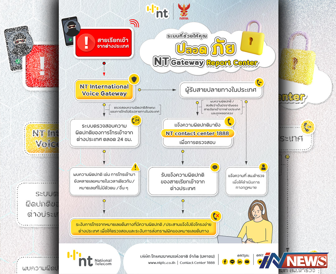 กรุงเทพฯ-NT จัดทำระบบตรวจสอบเพื่อระงับการโทรเข้าจากต่างประเทศที่ผิดปกติ หวังร่วมแก้ปัญหาการระบาดหนักจากแก๊งคอลเซ็นเ...