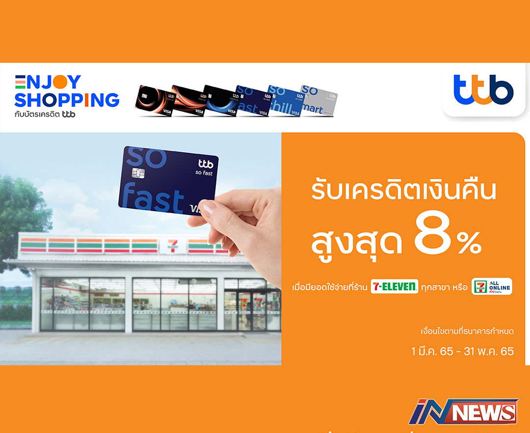 บัตรเครดิตทีทีบีโปรซื้อสินค้าร้านเซเวนฯ รับเครดิตเงินคืนสูงสุด8%