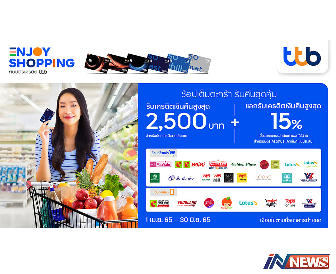 บัตรเครดิตทีทีบีต่อยอดช้อปปิ้งจ่ายร้าน รับเครดิตเงินคืน2.5พัน-แลกเงิน15%