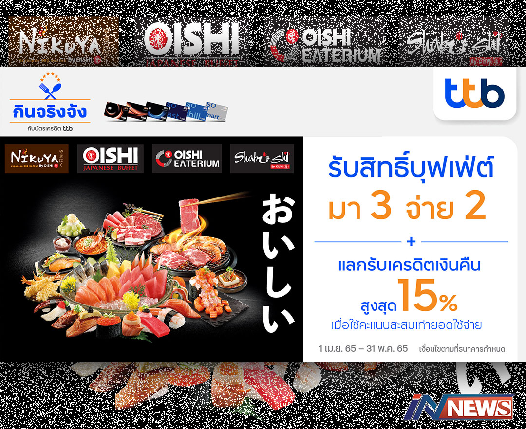 บัตรเครดิตทีทีบีชวนอิ่มสุดคุ้มแบบไม่อั้น รับสิทธิ์มา3จ่าย2กินอาหารในเครือโออิชิ