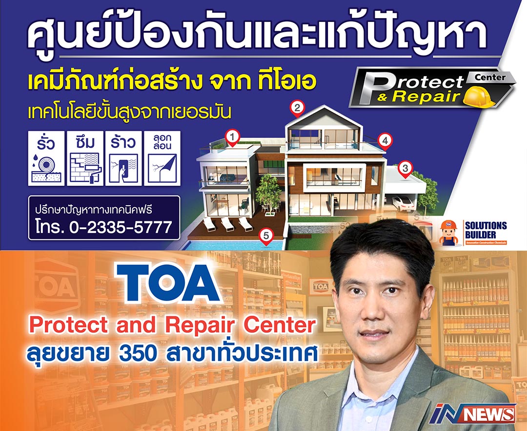 กรุงเทพฯ-TOA บุกธุรกิจวัสดุก่อสร้าง ลุยเปิด Protect and Repair Centerรวม 350 สาขาตั้งเป้ายอดขายกว่า 1,500 ล้านบาท
