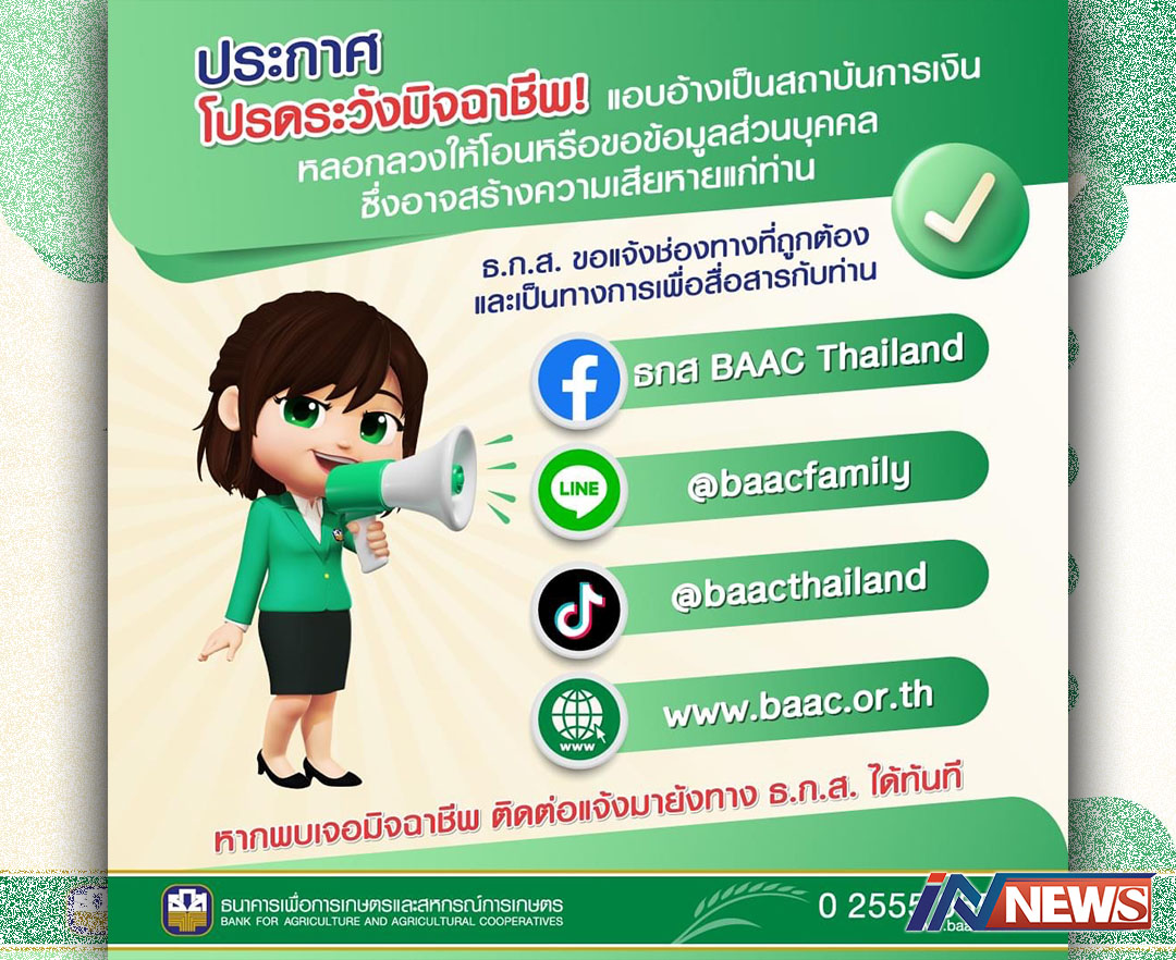 ธ.ก.ส.เตือน!มิจฉาชีพแอบใช้โลโก้ธนาคาร อ้างเป็นสปอนเซอร์ปล่อยกู้ออนไลน์