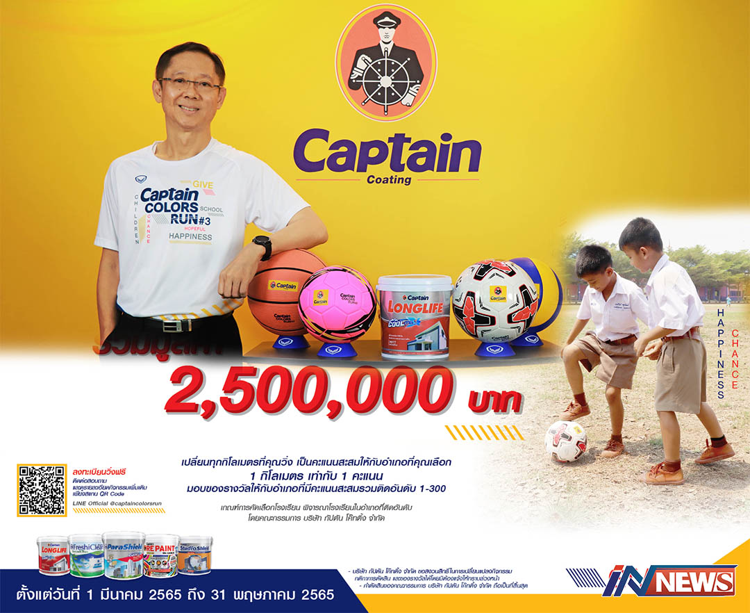 'สีกัปตัน'ชวนวิ่งฟรีออกกำลังกายได้บุญ ทำเพื่อเด็ก'Captain Colors Run#3'