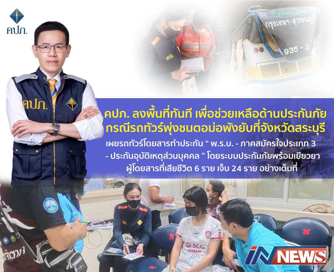คปภ.ช่วยประกันภัยกรณีอุบัติเหตุรถทัวร์ ที่จังหวัดสระบุรีตาย7บาดเจ็บระนาว