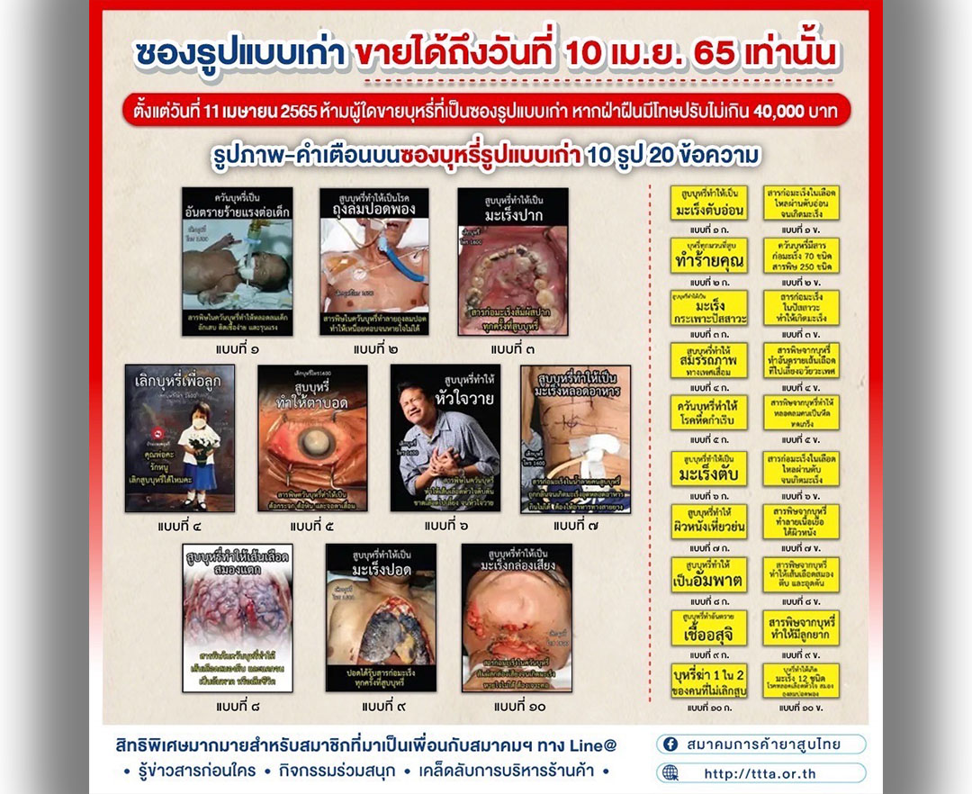 กรุงเทพฯ-สมาคมการค้ายาสูบไทย ออกโรงเตือนร้านค้า ขายบุหรี่ที่ซองยังไม่เปลี่ยนภาพคำเตือนชุดใหม่หลัง 10 เมษายน 25...