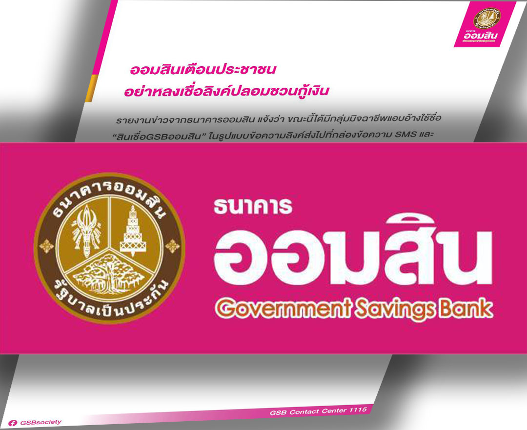 ออมสินเตือนปชช.อย่าหลงเชื่อลิงค์ปลอม เชิญชวนให้กู้เงินด่วนผ่านSMS,Line