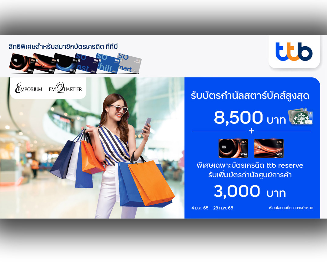 บัตรเครดิตทีทีบีชวนช้อปสุดคุ้มที่ The Emporium รับบัตรกำนัล1.1หมื่นบาท