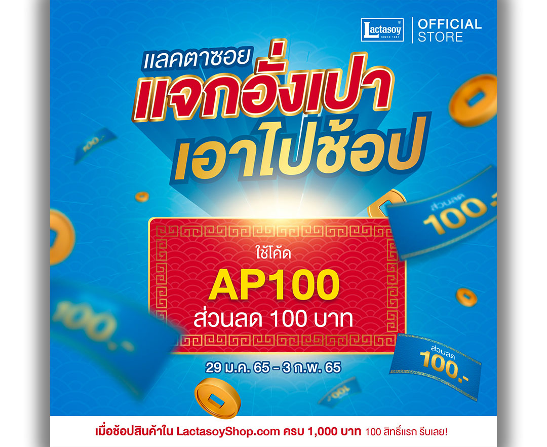 ตรุษจีนปีนี้'แลคตาซอย'ใจดีแจกอั่งเปา ส่วนลด100บาทช้อปครบพันส่งฟรี!!!