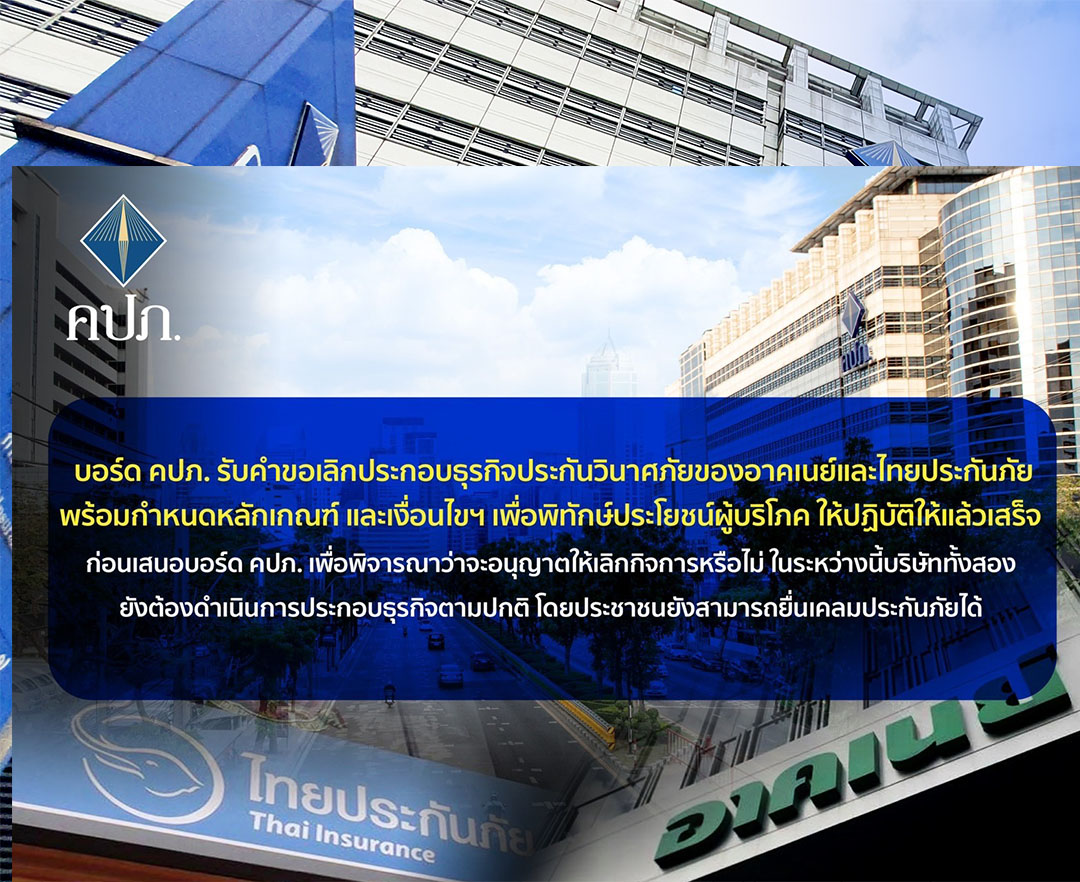 'บอร์ดคปภ.'รับคำขอเลิกประกันวินาศภัย ของอาคเนย์และไทยประกันภัยแล้ว