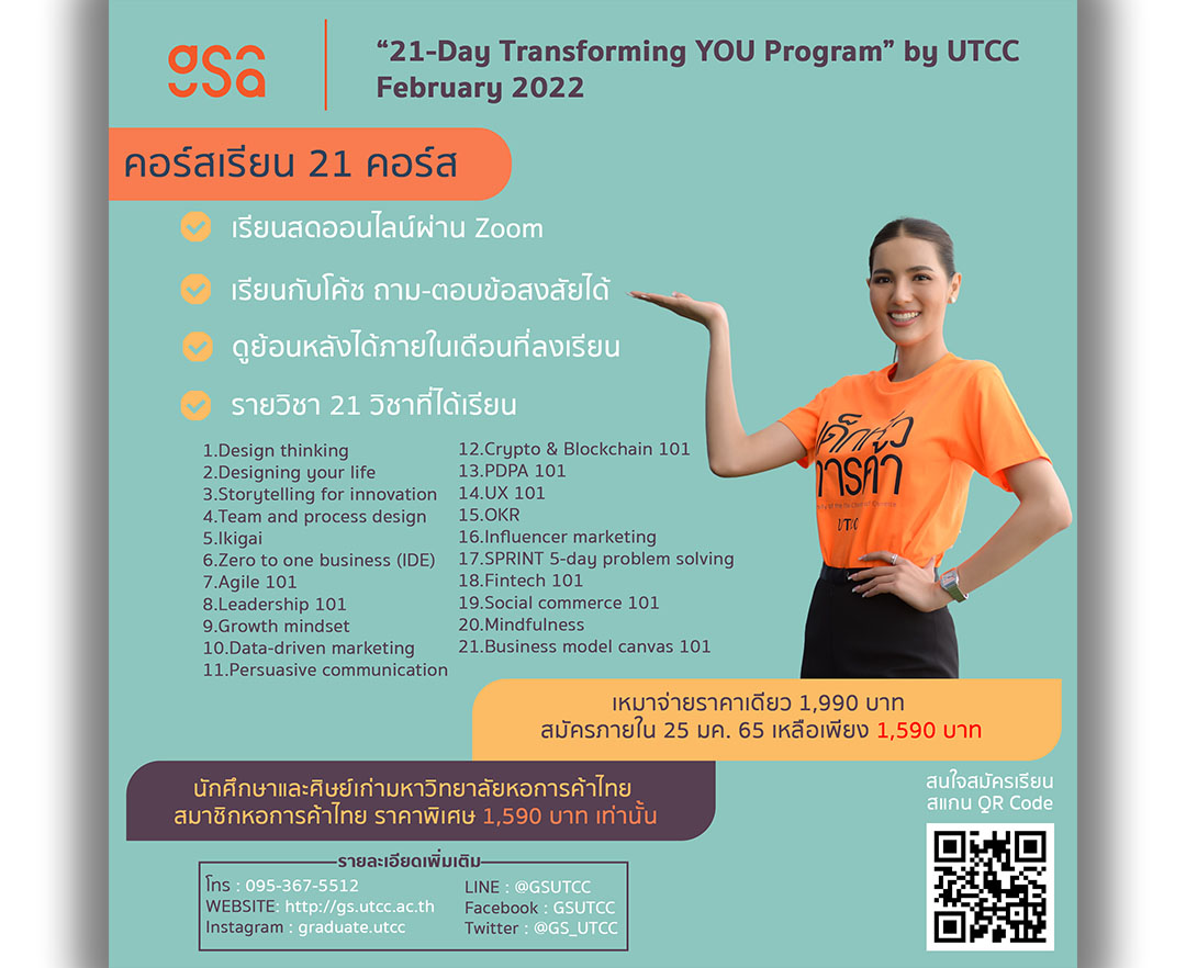 กรุงเทพฯ-บัณฑิตวิทยาลัย มหาวิทยาลัยหอการค้าไทย เปิดคอร์ส 21 วันเปลี่ยนแปลงตัวเอง รองรับทักษะแห่งอนาคต พร้อมโปร...