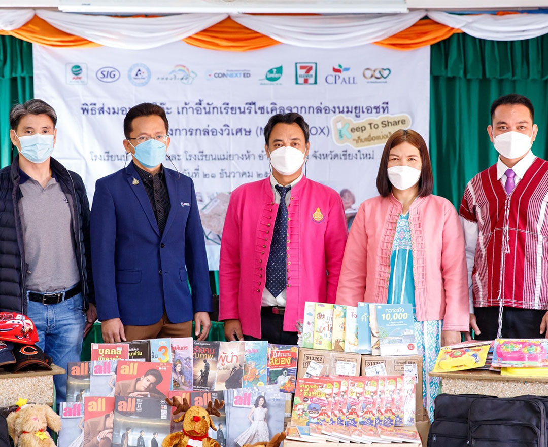 เซเว่นฯ ร่วมกับ เอส ไอ จี ส่งมอบชุดโต๊ะเก้าอี้ รีไซเคิลจากกล่องนมยูเอชทีในโครงการกล่องวิเศษ ให้กับโรงเรียนบ้านแม่โต๋ และ...