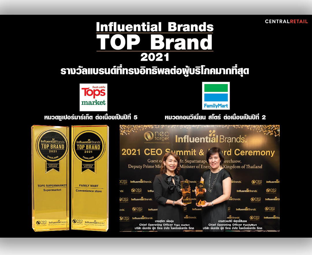 'ซ็นทรัลฟู้ดรีเทล'ยืนหนึ่งผู้นำค้าปลีกไทย นำท็อปส์คว้าTop Influential Brands
